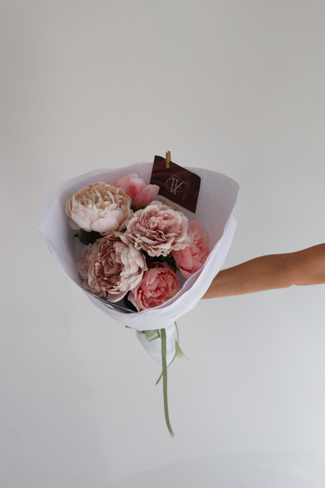 Each floral arrangement is uniquely crafted, and the exact stems used may vary from piece to piece. However, we guarantee that every bouquet is thoughtfully designed and made with love. If you are wanting something specific, please get in touch with us via the contact page.