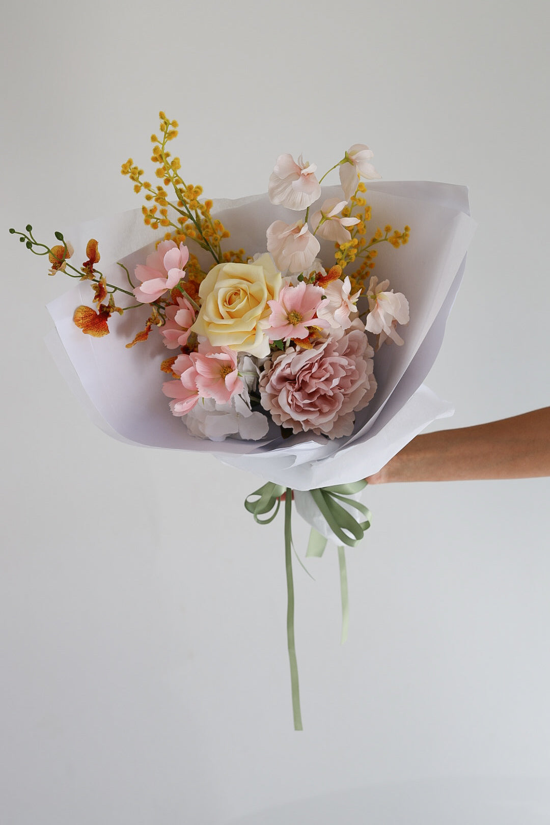 Each floral arrangement is uniquely crafted, and the exact stems used may vary from piece to piece. However, we guarantee that every bouquet is thoughtfully designed and made with love. If you are wanting something specific, please get in touch with us via the contact page.